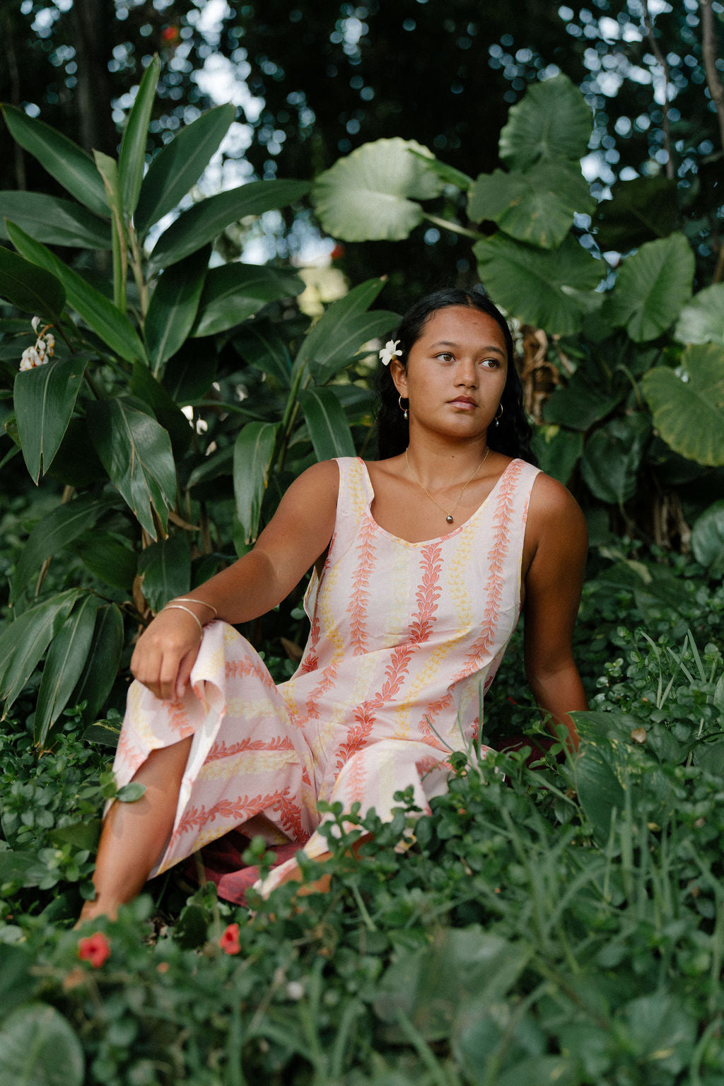 The Haliʻa Aloha in Noe Jumper tells a story of community and tradition. It’s born from a cherished memory of how our kūpuna (elders) would gather on the Baldwin Home lawn on Front Street to weave plumeria lei. These leis were sold to raise money for scholarships for Lahainaluna High School Seniors. When you wear this jumper, you’re not just wearing a beautiful design, you’re carrying a piece of this legacy of love and aloha.