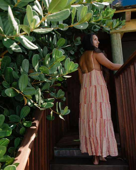 The Sofia Maxi Dress, a silhouette celebrated for its graceful drape and universally flattering fit, is now part of our powerful 'Ulu Kapa Kuiki Collection in vibrant red. Experience true luxury with 100% bamboo fabric, offering unparalleled softness and flow, infused with a story of home, abundance, and the future.