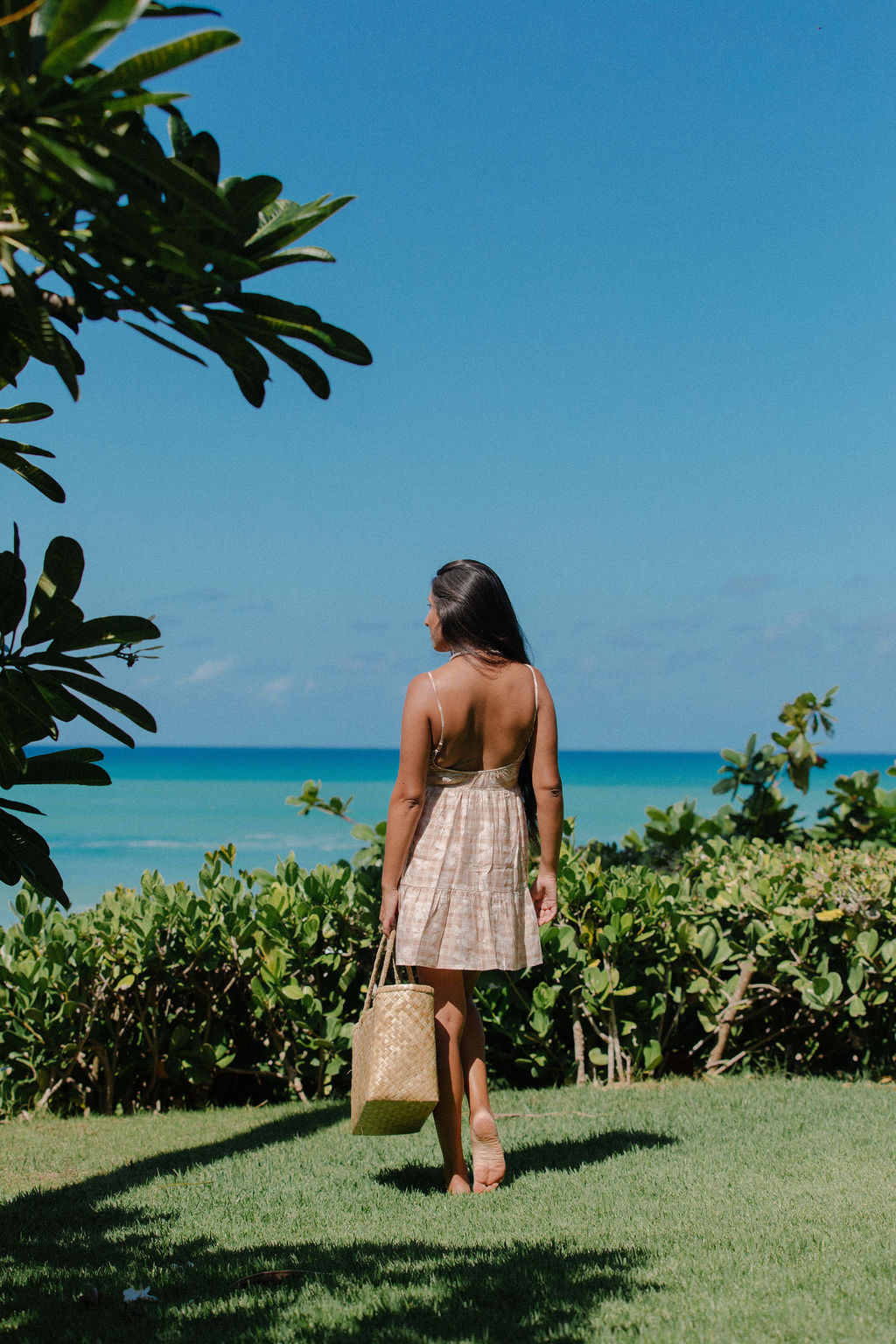 Crafted from 100% TENCEL, this fabric was chosen for its exceptional integrity, drape, and sustainable lifecycle. The Baby Doll Mini Dress silhouette provides an effortless flow, while the exclusive 'Ulu Palaka print serves as a conscious reminder of the 'āina (land) and the legacy of sustenance it provides.